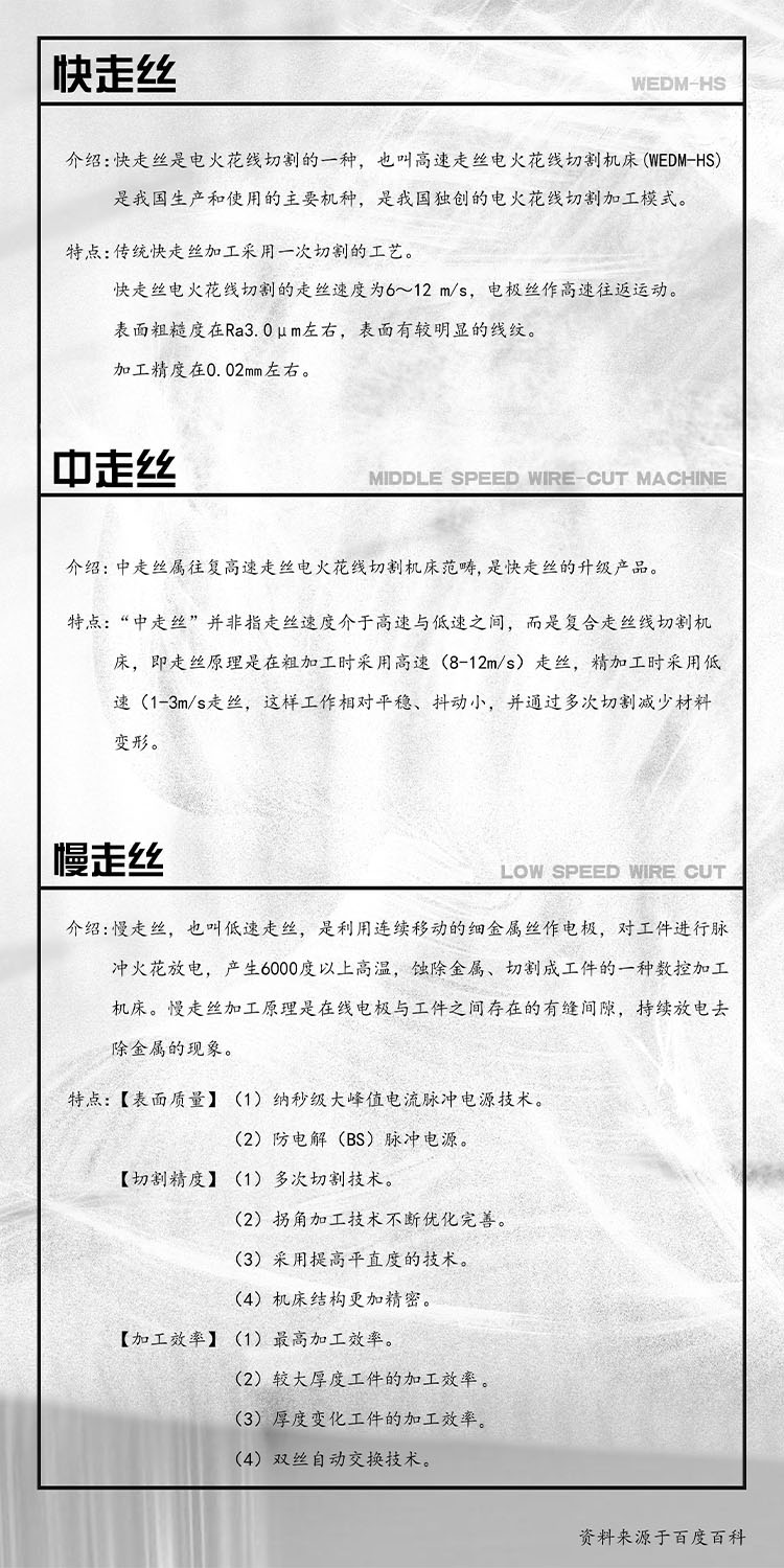 关于快走丝,中走丝,慢走丝